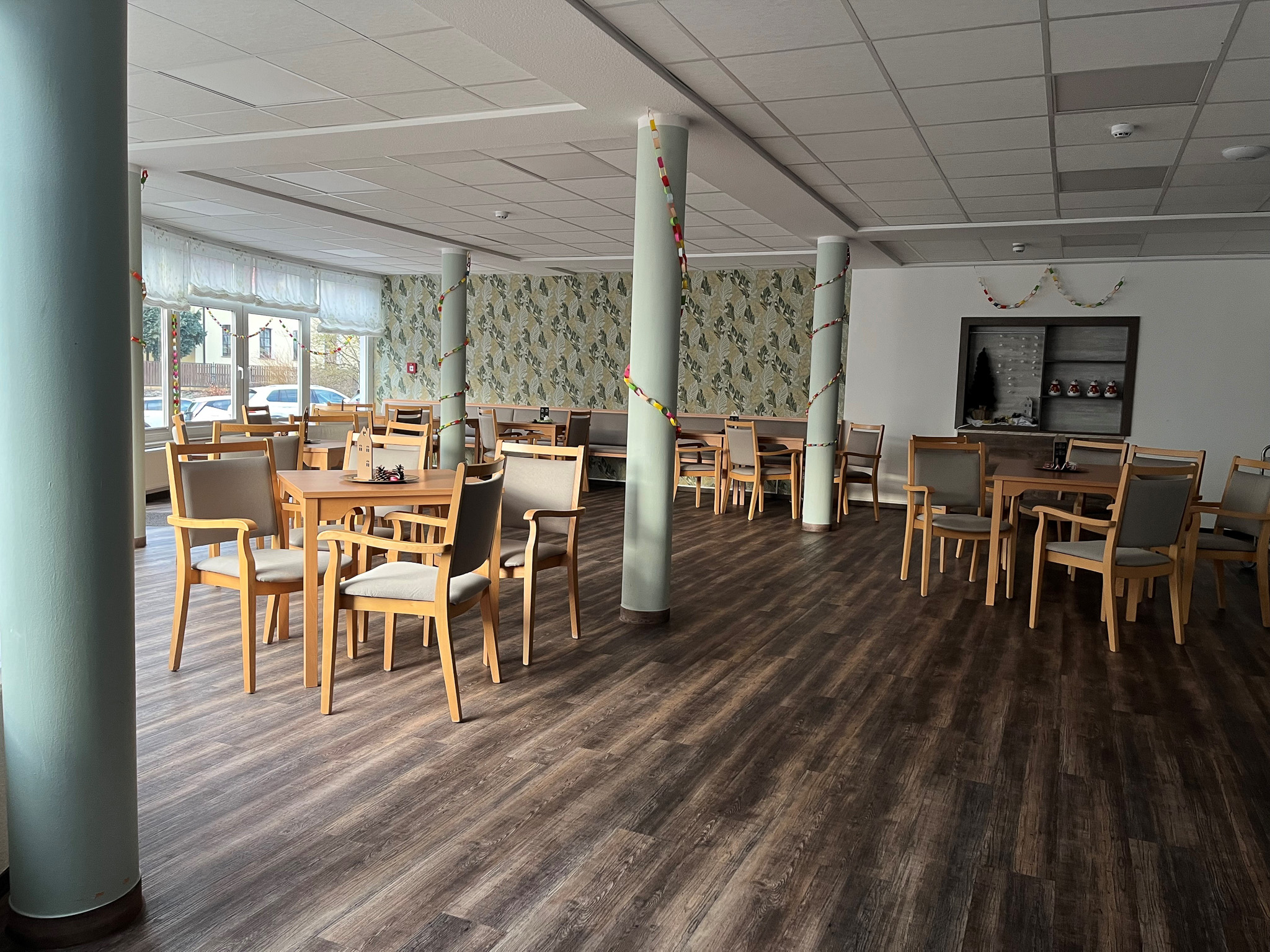 Die Seniorenresidenz bietet für 44 pflegebedürftige Bewohner*innen, ab Pflegegrad 2, ein gemütliches und liebevolles Zuhause. Neben der Standardausstattung können die Zimmer mit persönlichen Gegenständen, Kleinmöbeln und Accessoires zum eigenen Wohlbefinden ergänzt werden.